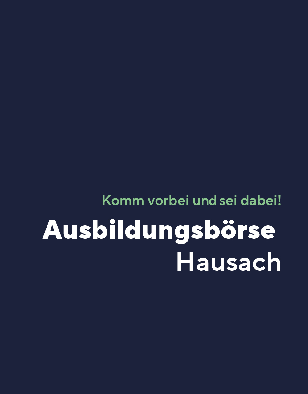Am Dienstag, den 24. März 2026, sind wir mit einem eigenen Stand auf der Ausbildungsbörse in Hausach vertreten. Die Veranstaltung findet in der Stadthalle Hausach statt.